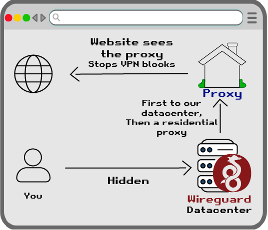 Our Datacenter proxies exit the same servers and IP addresses as our WireGuard users. So the website won’t know if you’re using Tor or a VPN. Once we progress through beta testing, we will begin offering residential proxies as well.